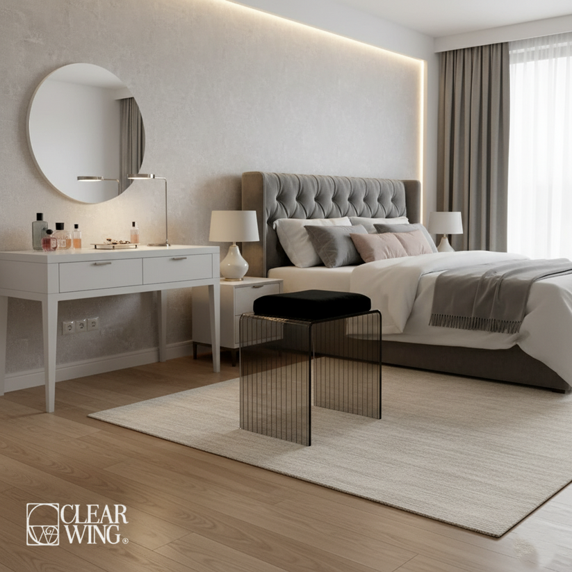 Bold yet refined, the Infinity Mosaic Chair brings smoked black acrylic to life with a mesmerizing striped pattern and a luxuriously padded seat. Its sculptural form and striking texture offer a visual statement while ensuring comfort, making it a centerpiece in any modern space.