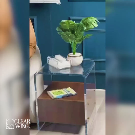 The ClearWood Table is a modern side table that seamlessly combines transparency and warmth. With its clear acrylic structure and dark wood accents, it delivers both storage and style without overpowering your space.